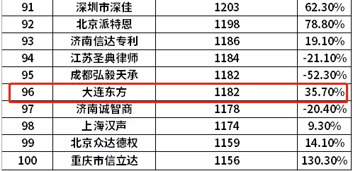 熱烈祝賀大連東方專利在成立25周年之際成為全國“發(fā)明專利代理100強”
